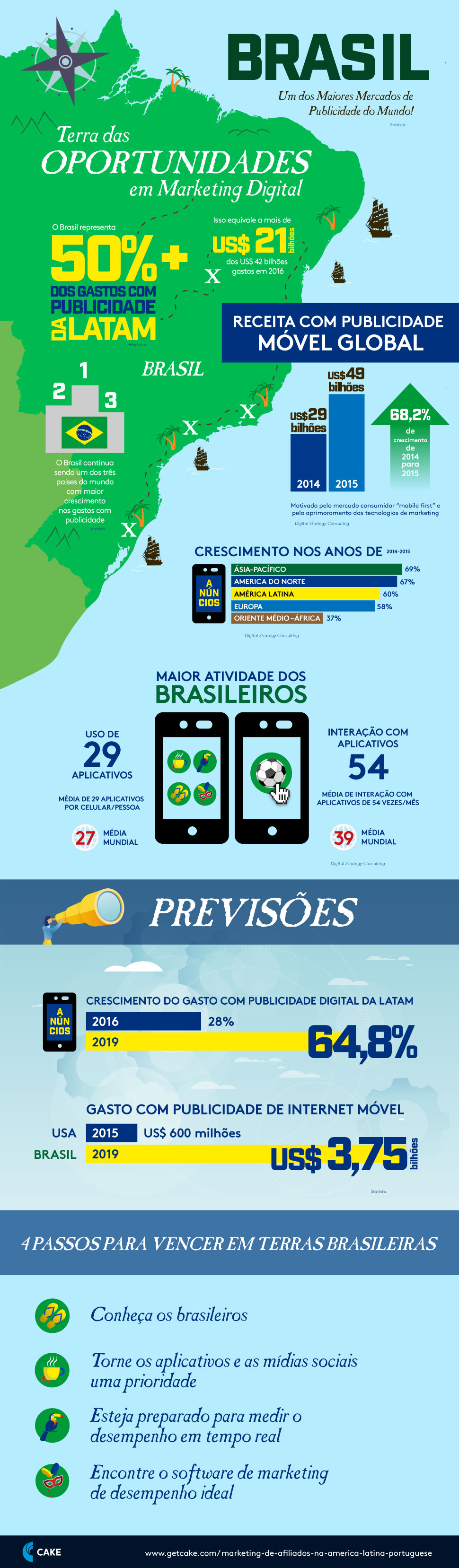 Como o mercado de anúncios lÃder na América Latina e um dos maiores mercados publicitários do mundo, o Brasil se torna uma oportunidade única e animadora para as marcas atuais, especialmente no setor de marketing mobile.